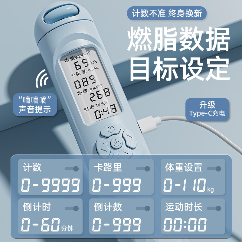 您的位置: 赫朗无绳跳绳健身减肥运动专用计数款专业燃脂女负重重力跳神绳子