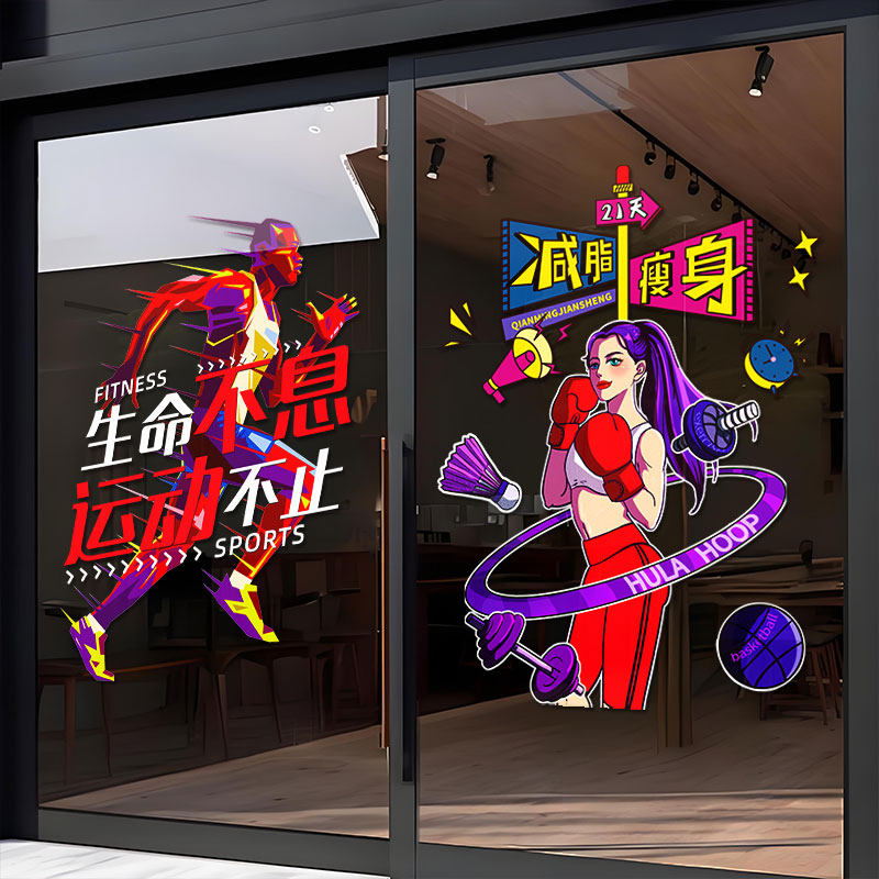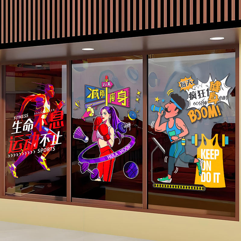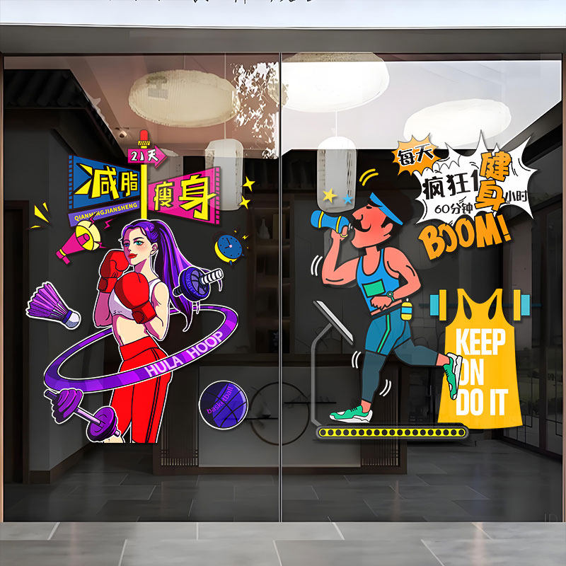 您的位置: 网红拳击馆健身房玻璃门贴纸体育运动减肥瘦身橱窗装饰品布置贴画