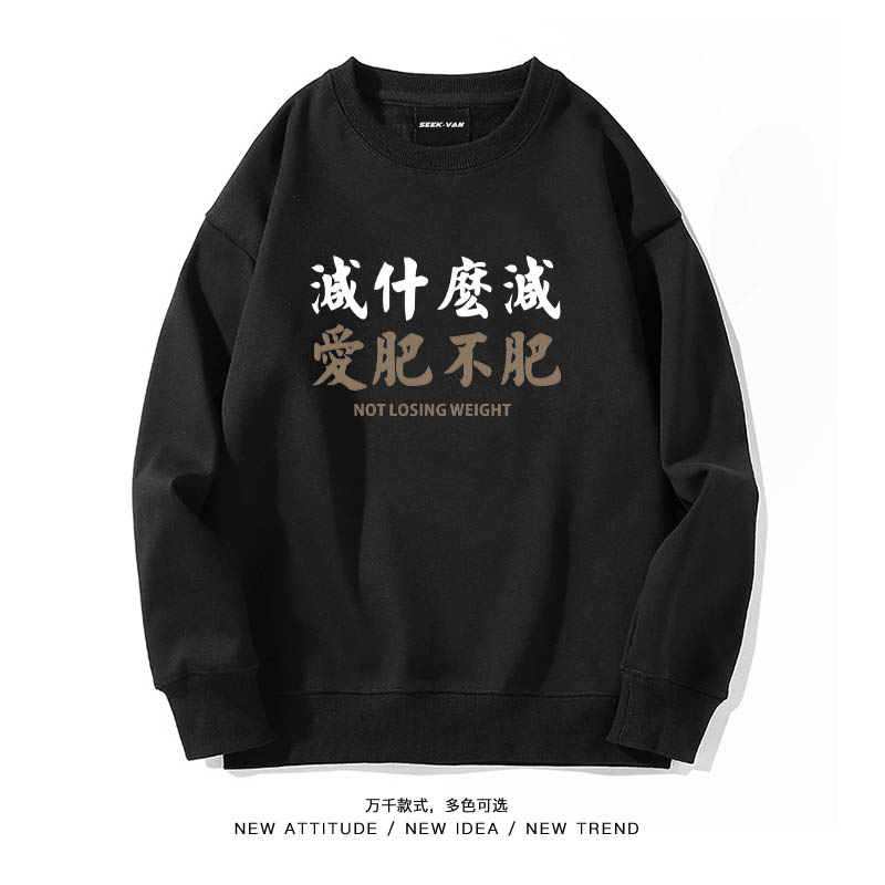 您的位置: 笑卖部/不减肥反焦虑文字国潮休闲中式大码重磅圆领卫衣外套无帽