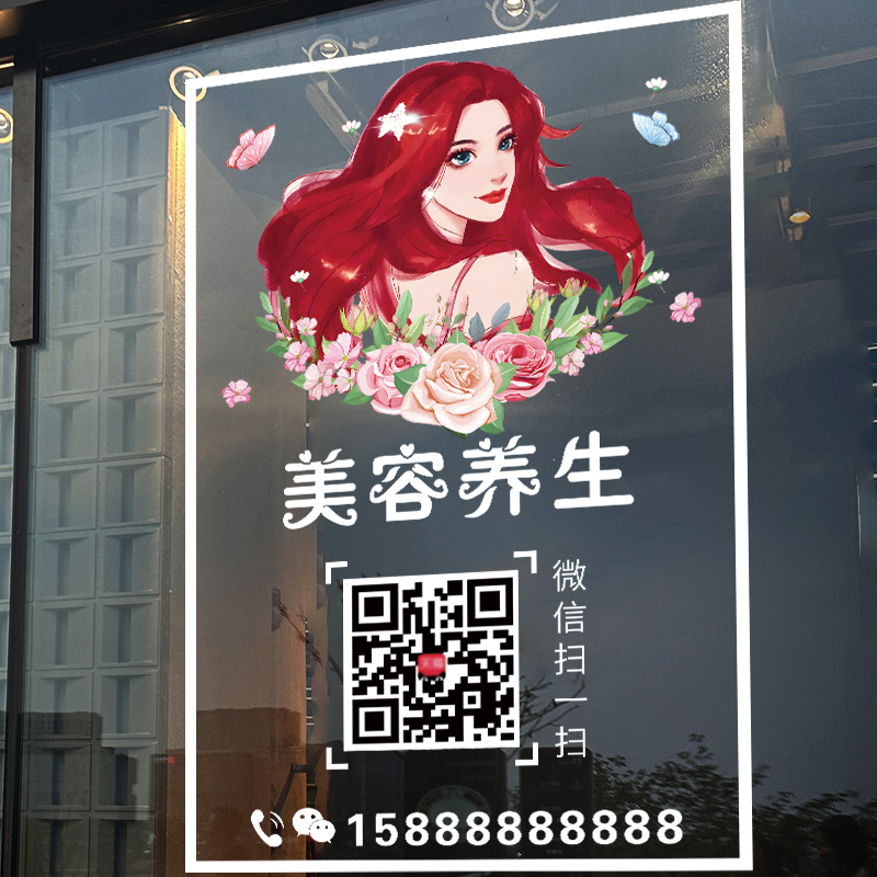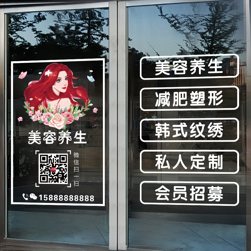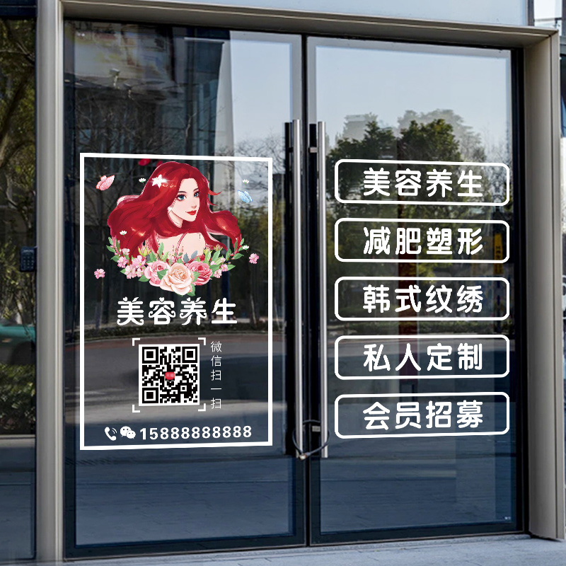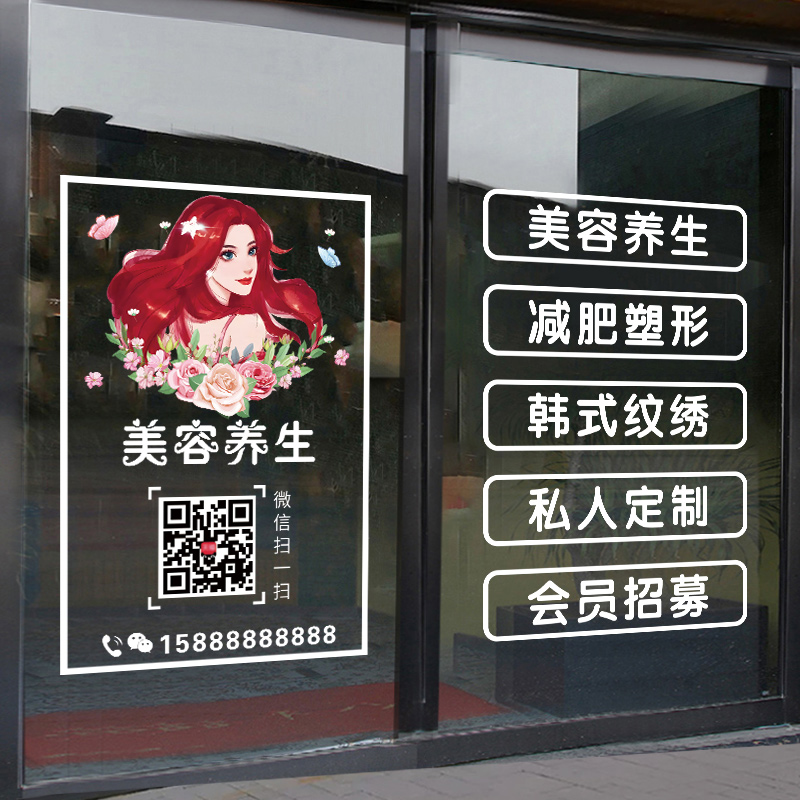 您的位置: 定制营业时间美容院玻璃门贴纸韩式纹绣减肥瘦身养生馆橱窗贴画