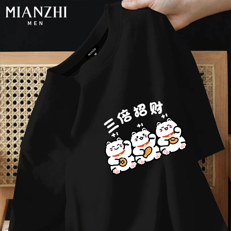 棉致可爱小猫减肥短袖t恤男纯棉2026新款夏季青少年运动宽松上衣