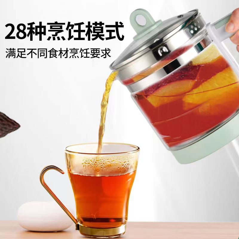 能煮善炖,24小时轻松预约,8小时长效保温。高硅硼玻璃材质、304不锈钢发热盘、防掉卡扣倾斜不易落设计、60秒提壶记忆。防烫提手、人体工程学手柄、壶盖自带滤网,轻松过滤残渣