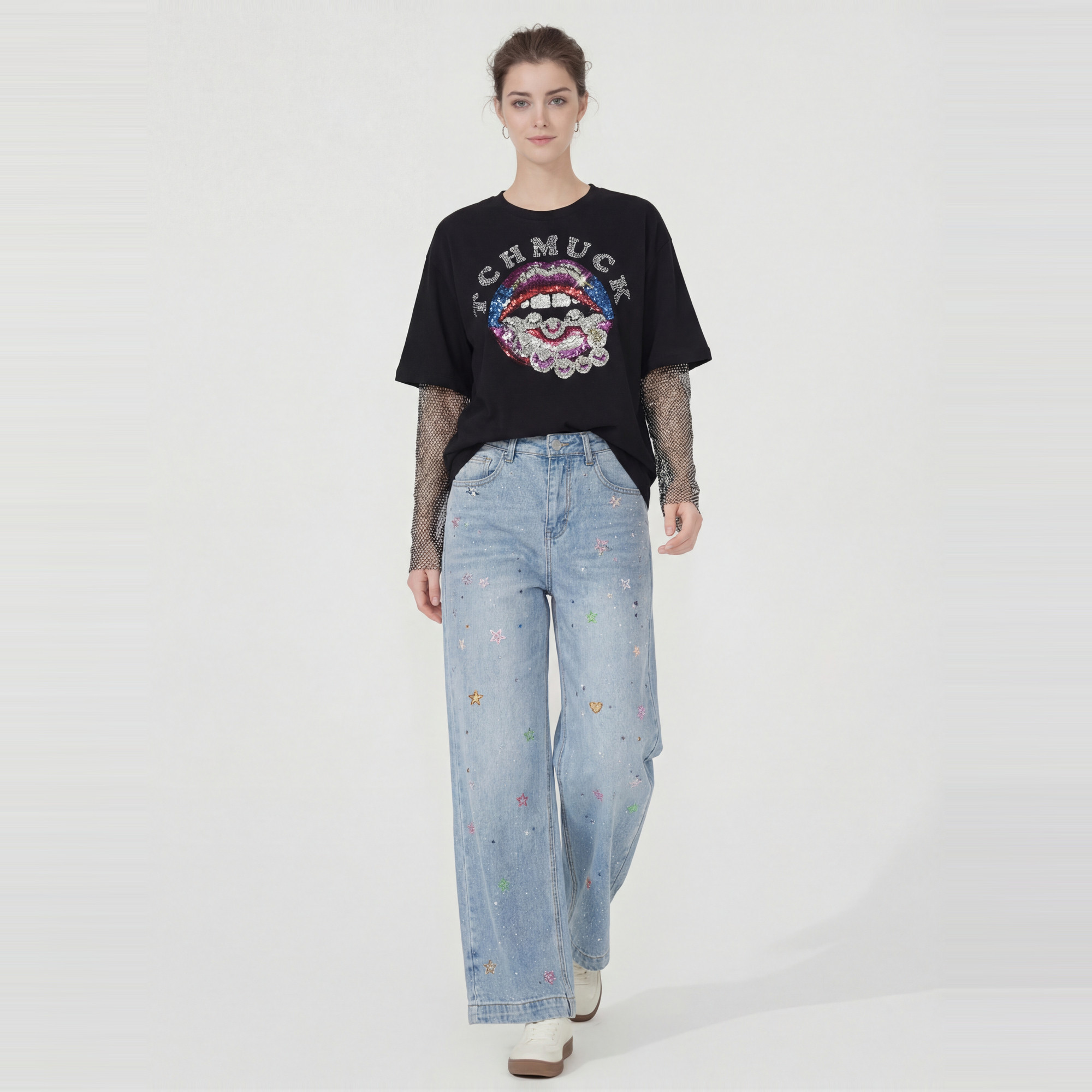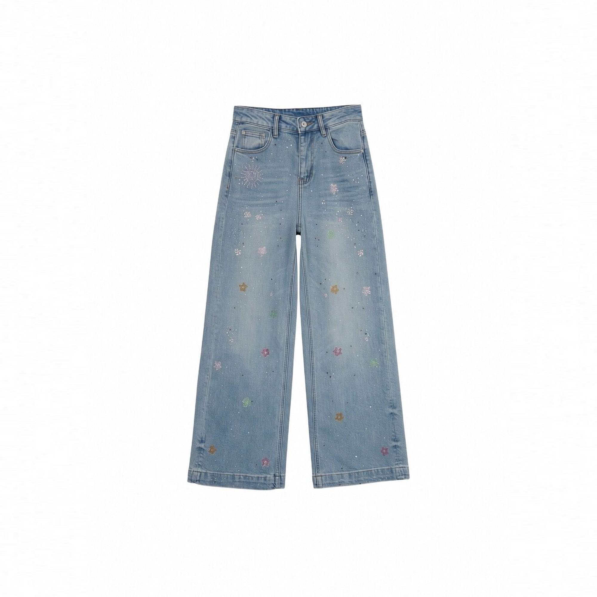 您的位置: TCH烫钻小花高腰显瘦浅蓝色阔腿牛仔裤女2026春夏新款T78A20E1042