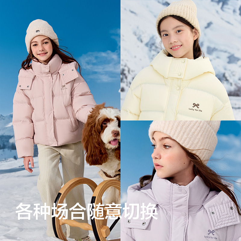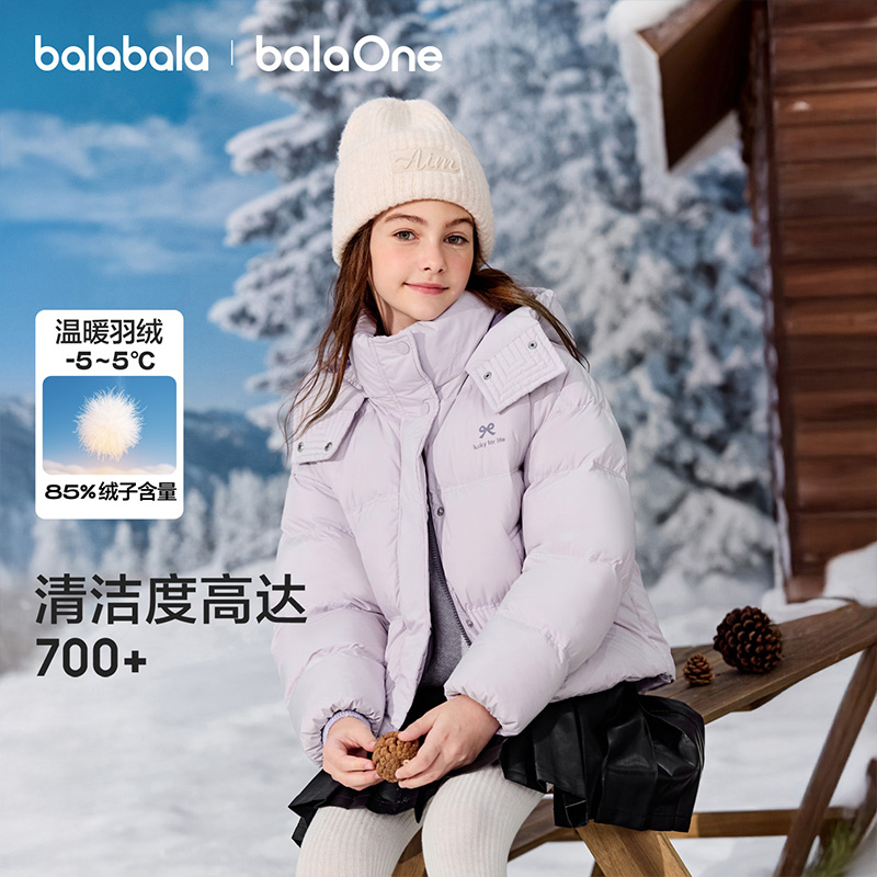 > 巴拉巴拉balaOne儿童羽绒服女童户外防风保暖冬外套2025新款撞色