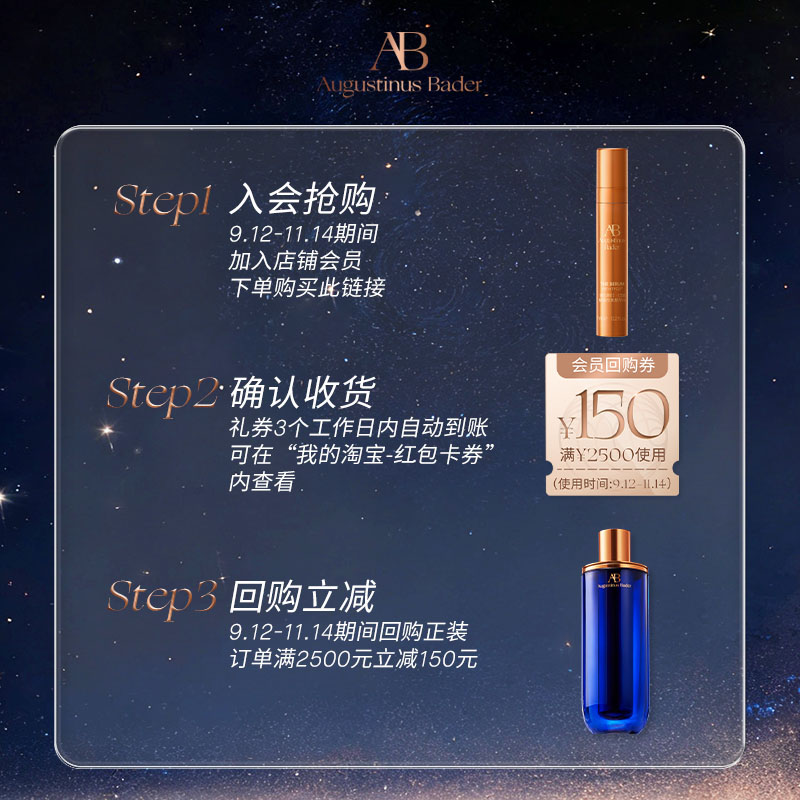 淘宝天猫【享150元券】奥古斯汀·巴德—AB蓝金精华液7ml体验试用礼优惠券折扣价格–彩云间