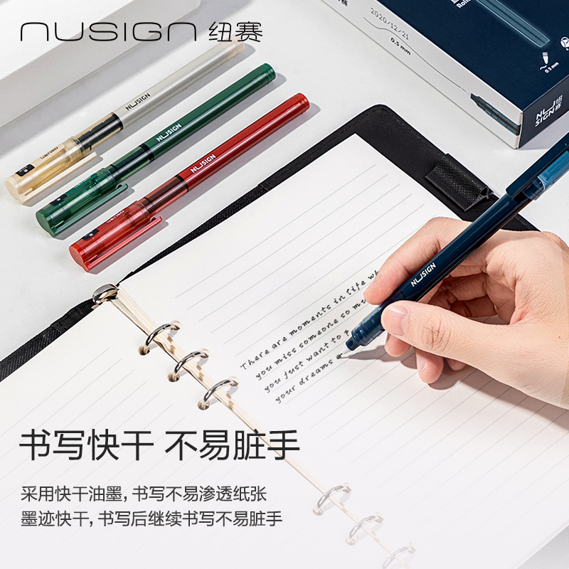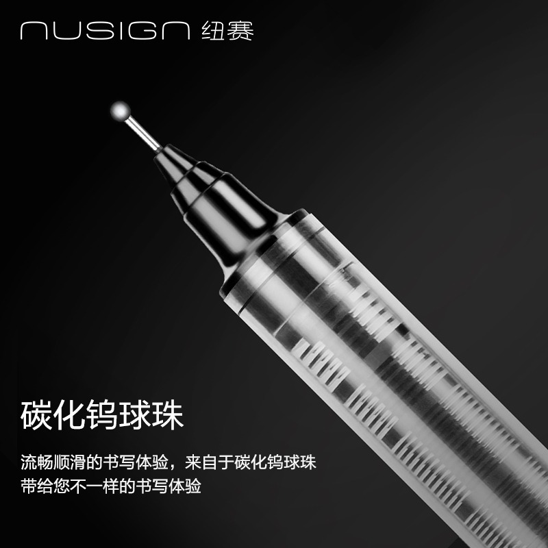 > Nusign纽赛巨能写直液式中性笔0.5黑色全针管笔大容量速干顺滑学生高颜值考研考试练字刷题笔文具碳素水笔
