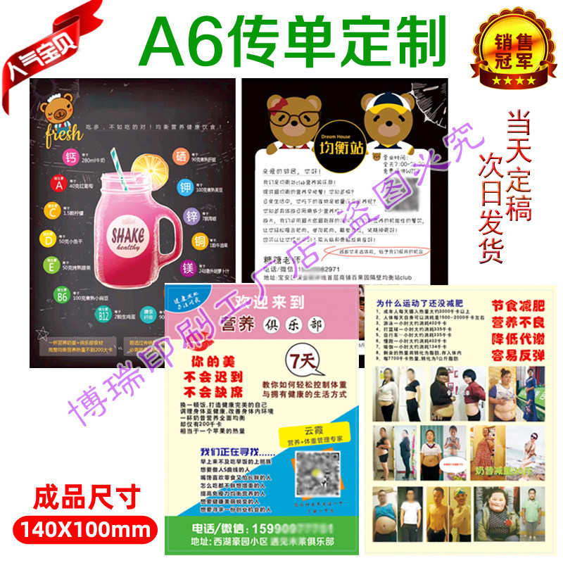 淘宝天猫A6传单130克足厚专业印刷康宝莱打印奶昔海报减肥七天卡彩页定制优惠券折扣价格–彩云间