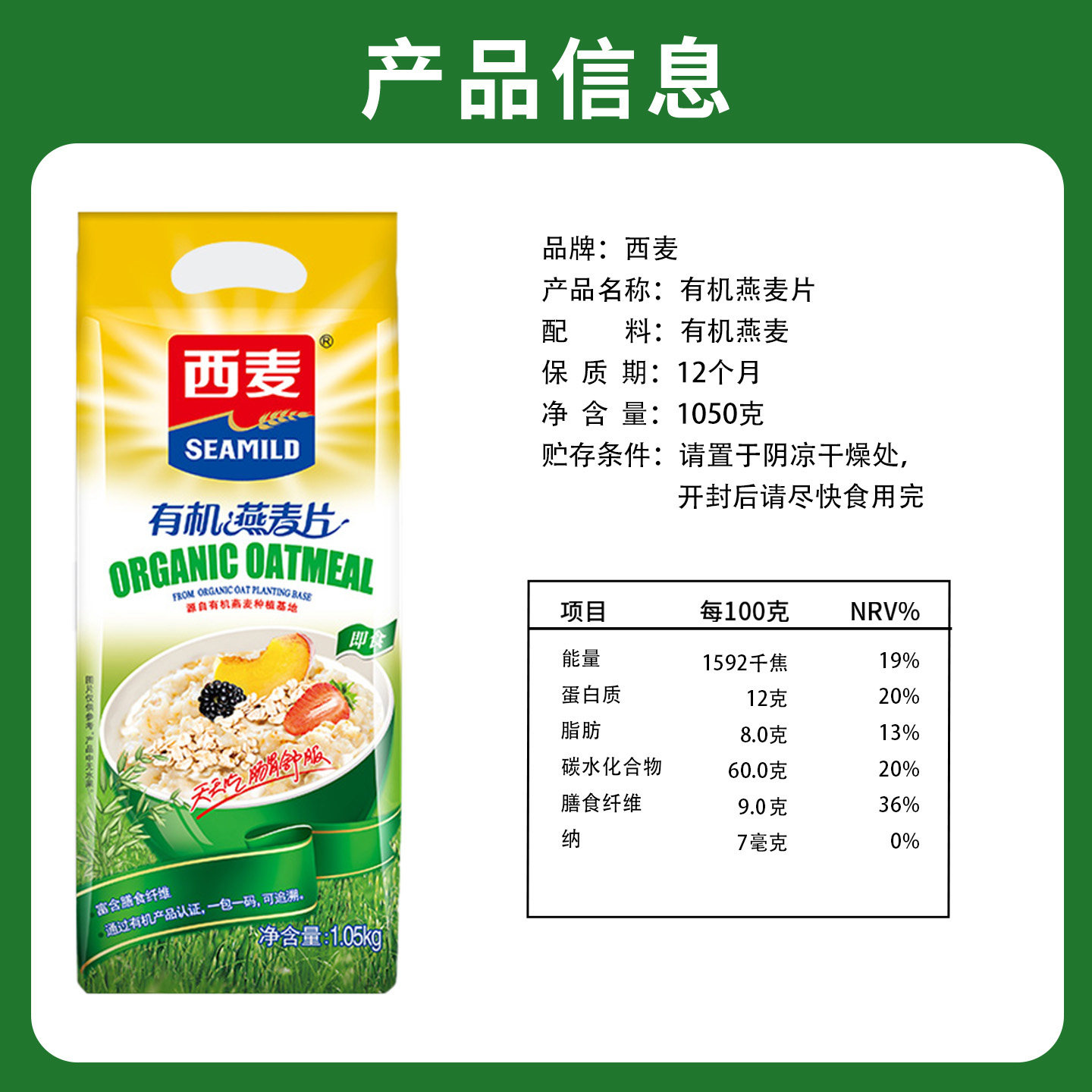> 西麦有机纯燕麦片袋高蛋白质无添加蔗糖营养谷物冲饮代代餐早餐