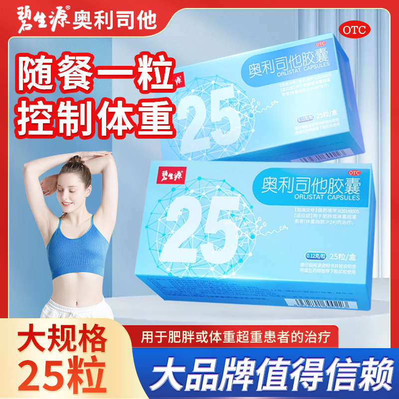 碧生源奥利司他胶囊25粒官方旗舰店排油燃脂减肥减重抗肥胖减肥药