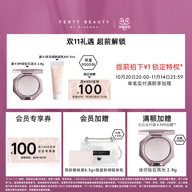 淘宝天猫【双11预售】FentyBeauty蕾哈娜隐蜜控油柔焦蜜粉定妆散粉大白饼优惠券折扣价格–彩云间