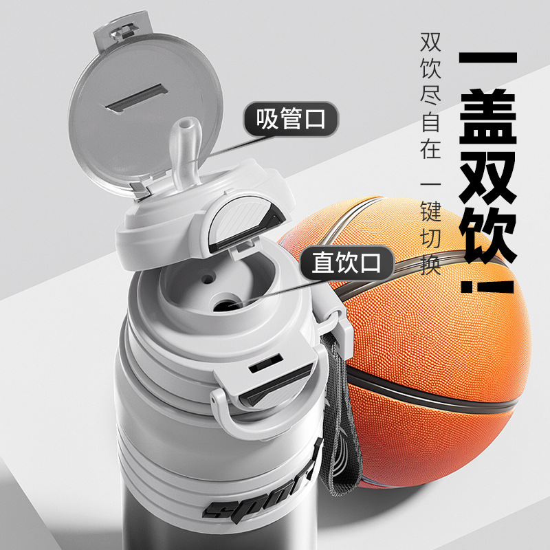 > 316不锈钢潮流保温杯户外运动大容量弹跳水杯便捷带提手双饮水壶