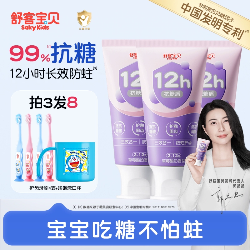> 舒客宝贝臻护抗糖防蛀儿童牙膏舒克含氟2到12岁换牙期旗舰店正品