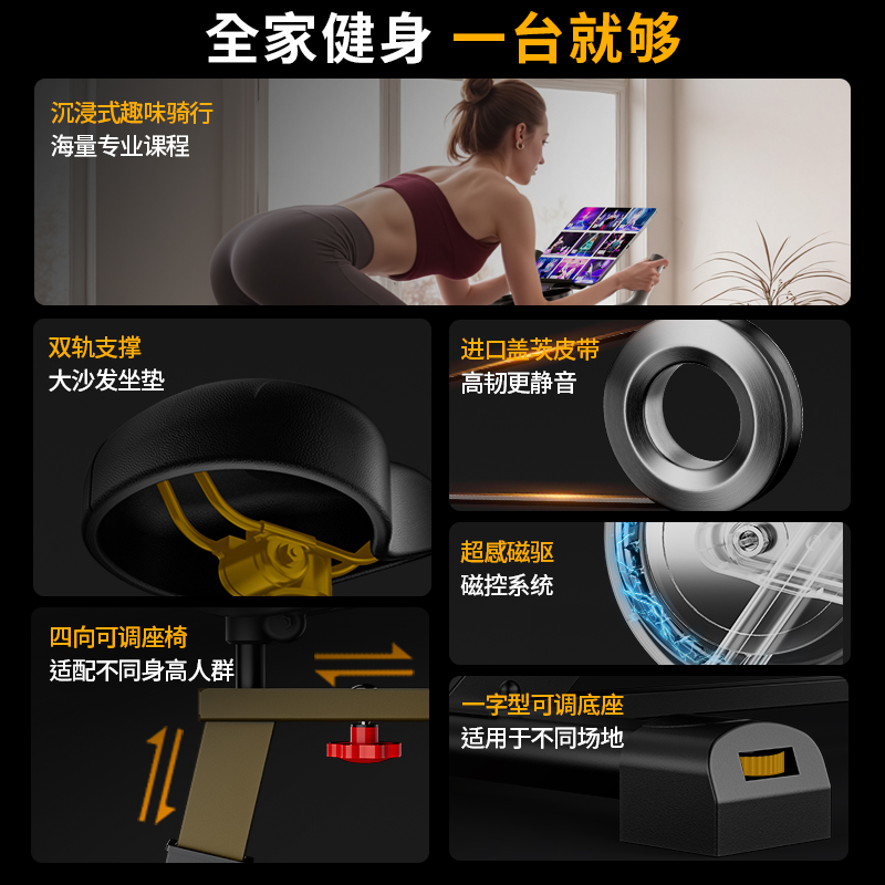 英尔健动感单车磁控家用静音小型自行车室内减肥锻炼运动健身器材