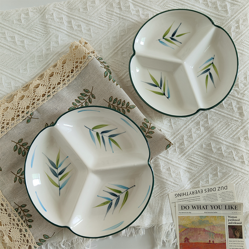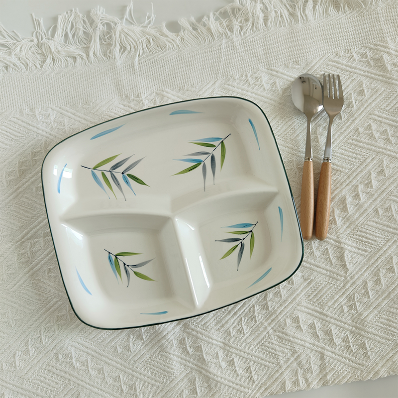 您的位置: 陶瓷釉下彩三格分食餐盘分格大人儿童高级感家用食堂减脂减肥餐盘