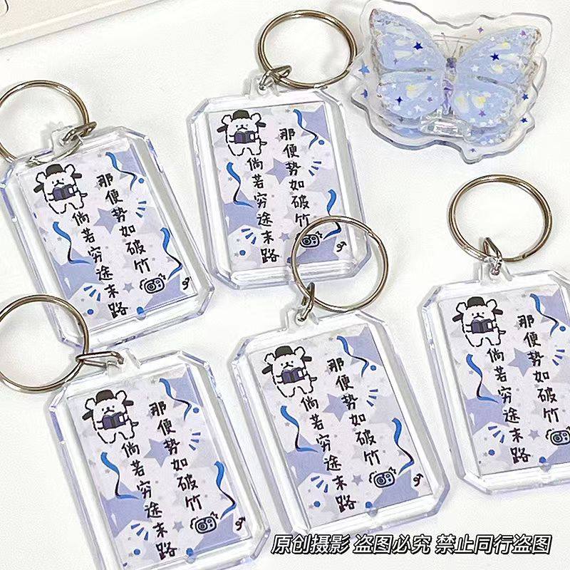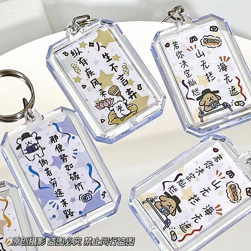 ins风励志线条小狗文字钥匙扣高颜值祝福语笔袋挂件学生毕业礼物