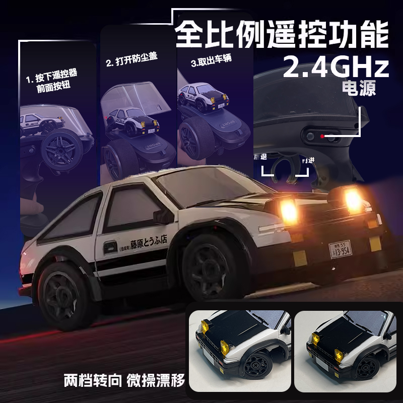 ae86迷你漂移遥控车rc桌面超汽车口袋赛车儿童玩具生日礼物1比64