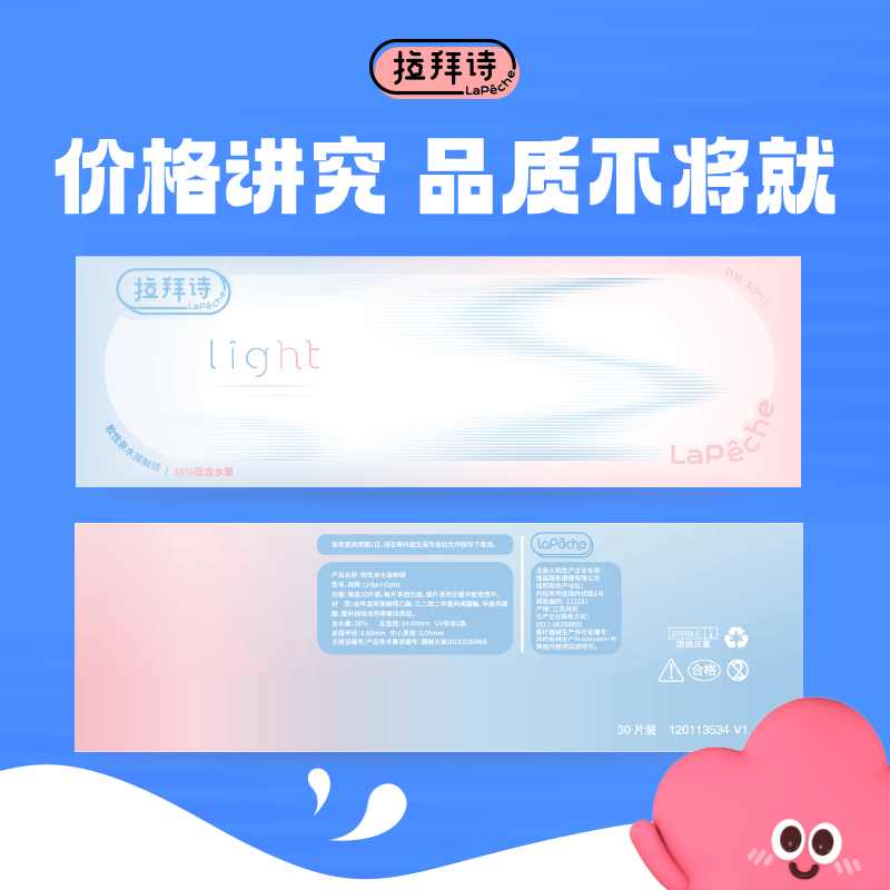 > Lapeche拉拜诗light系列双子片日抛近视隐形眼镜30片盒双含水视客