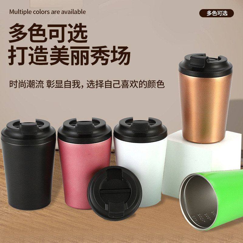 您的位置: 新款创意12oz翻盖咖啡杯简约纯色保温杯304不锈钢随手牛奶杯批发
