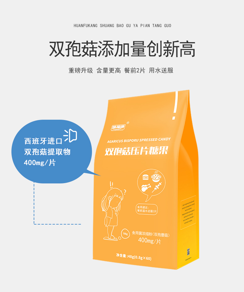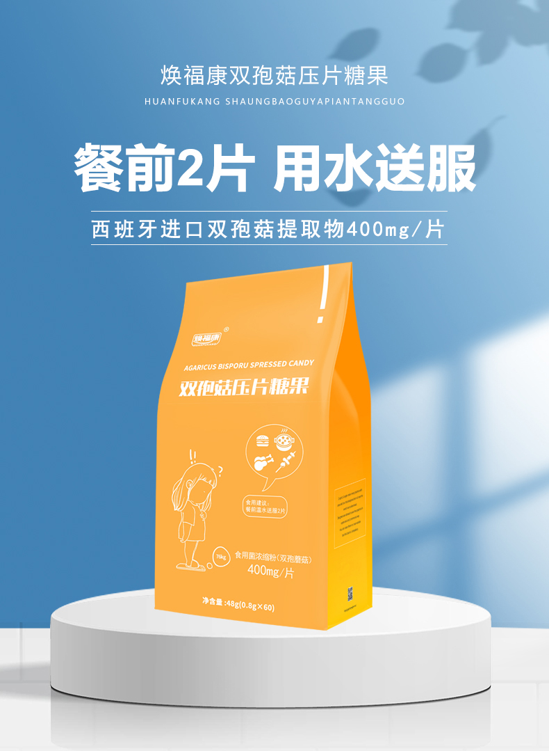 您的位置: 【买4送1】焕福康双孢菇压片糖果60片/袋独立包装白芸豆阿拉伯糖