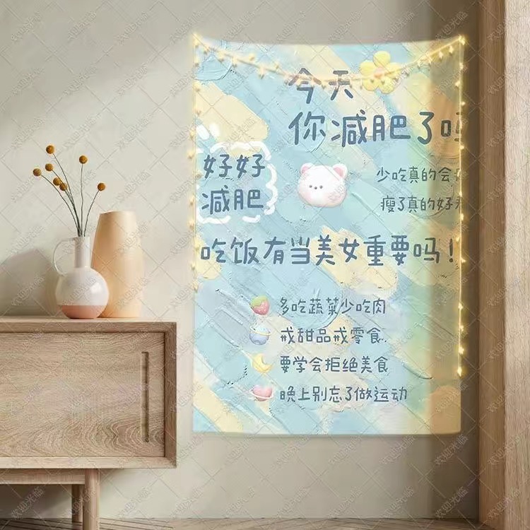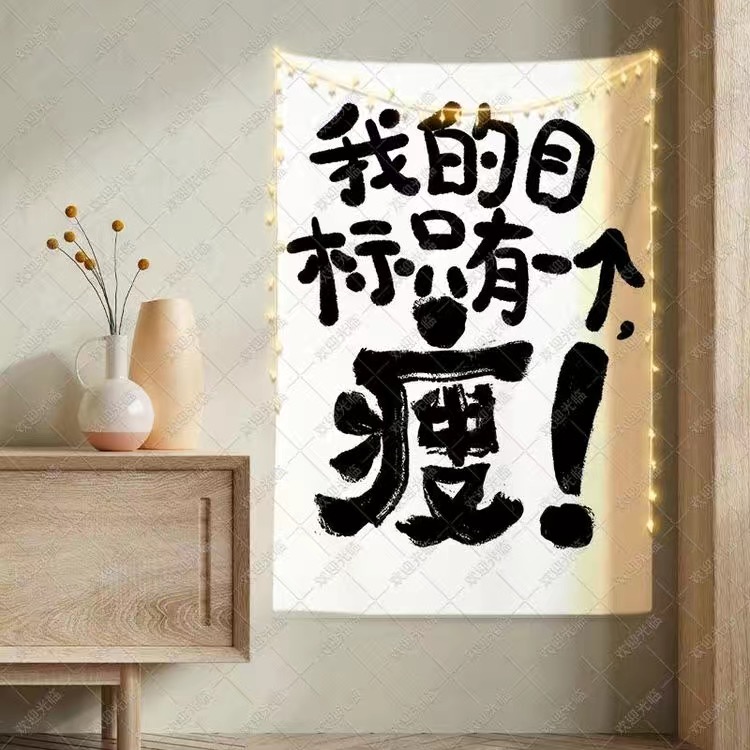 您的位置: 减肥励志背景布挂布手写自律文字瘦身背景布青年学生宿舍卧室布置