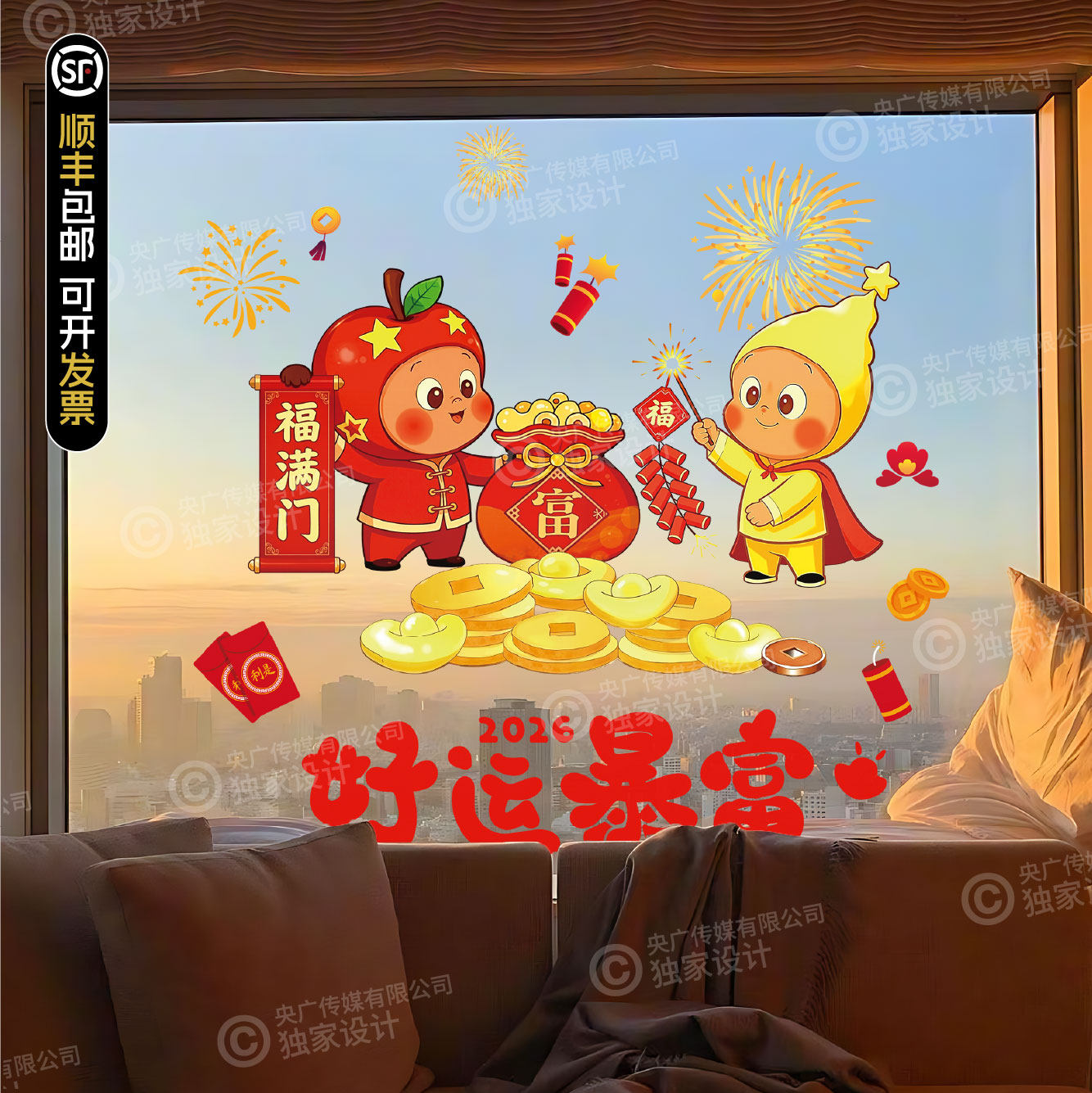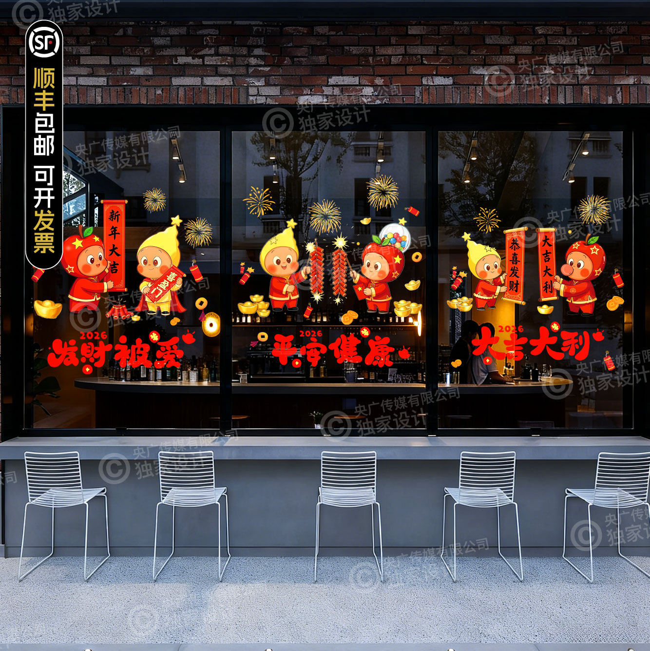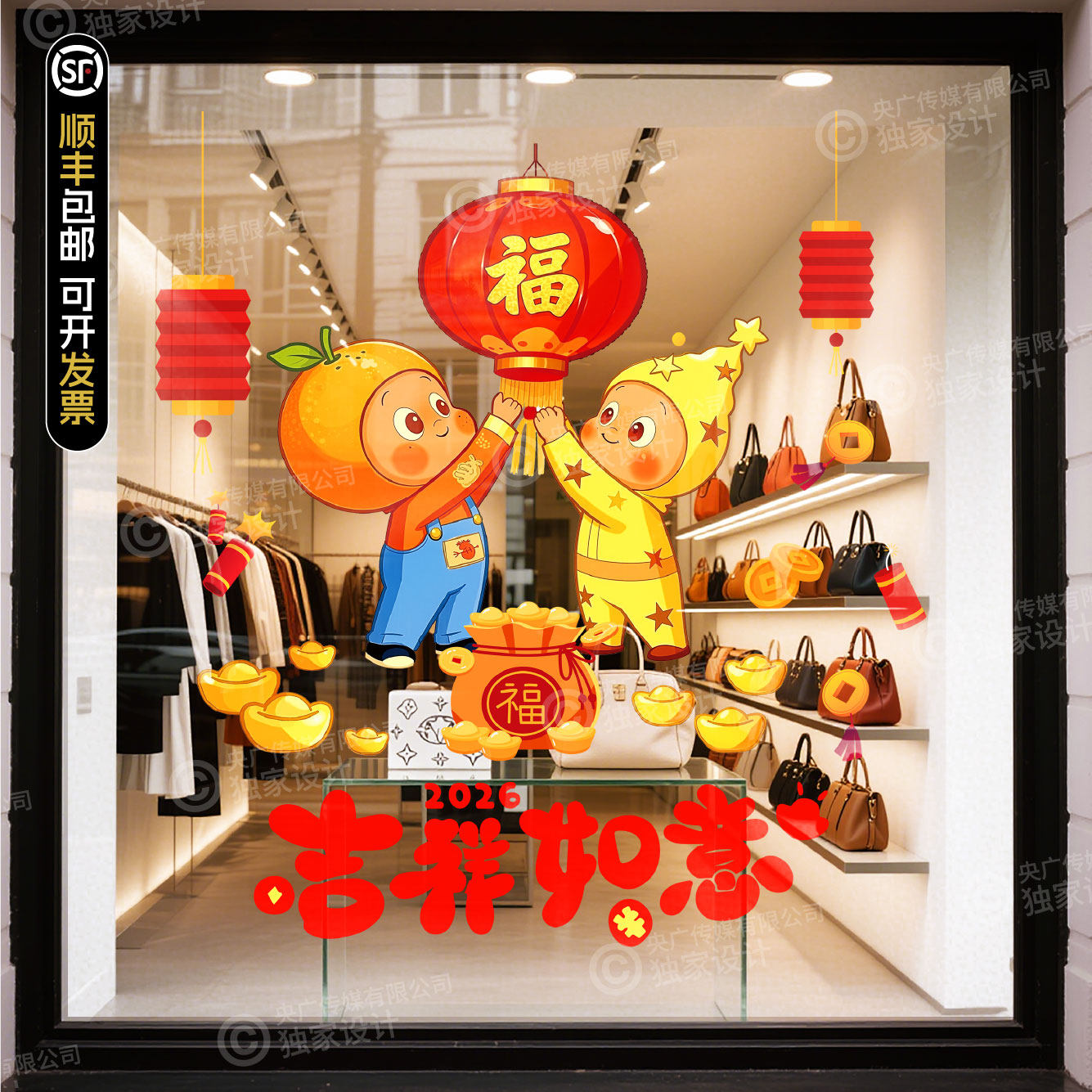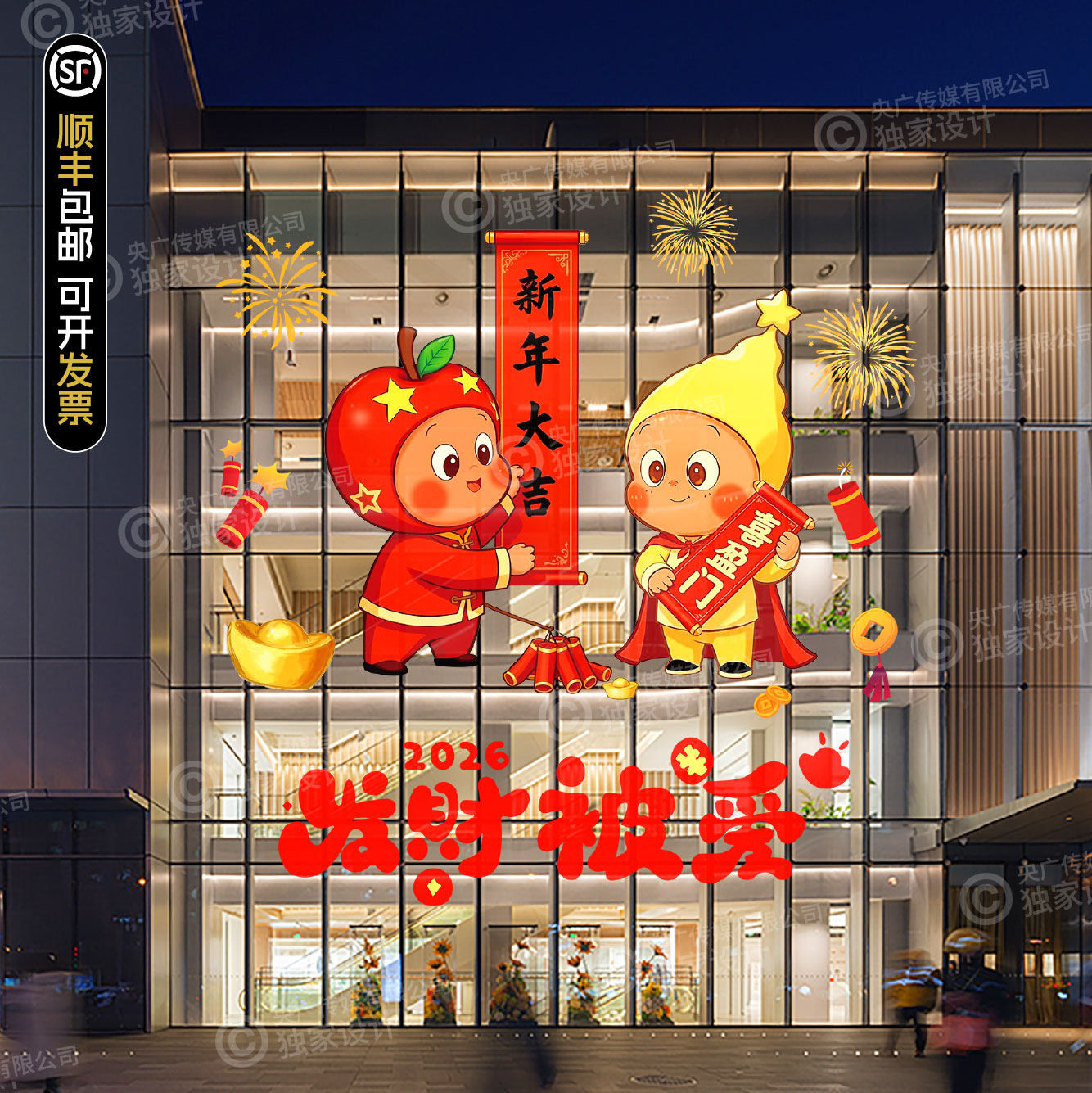淘宝天猫2026新年星星人春节卡通财神玻璃贴店铺装饰布置贴纸静电贴优惠券折扣价格–彩云间