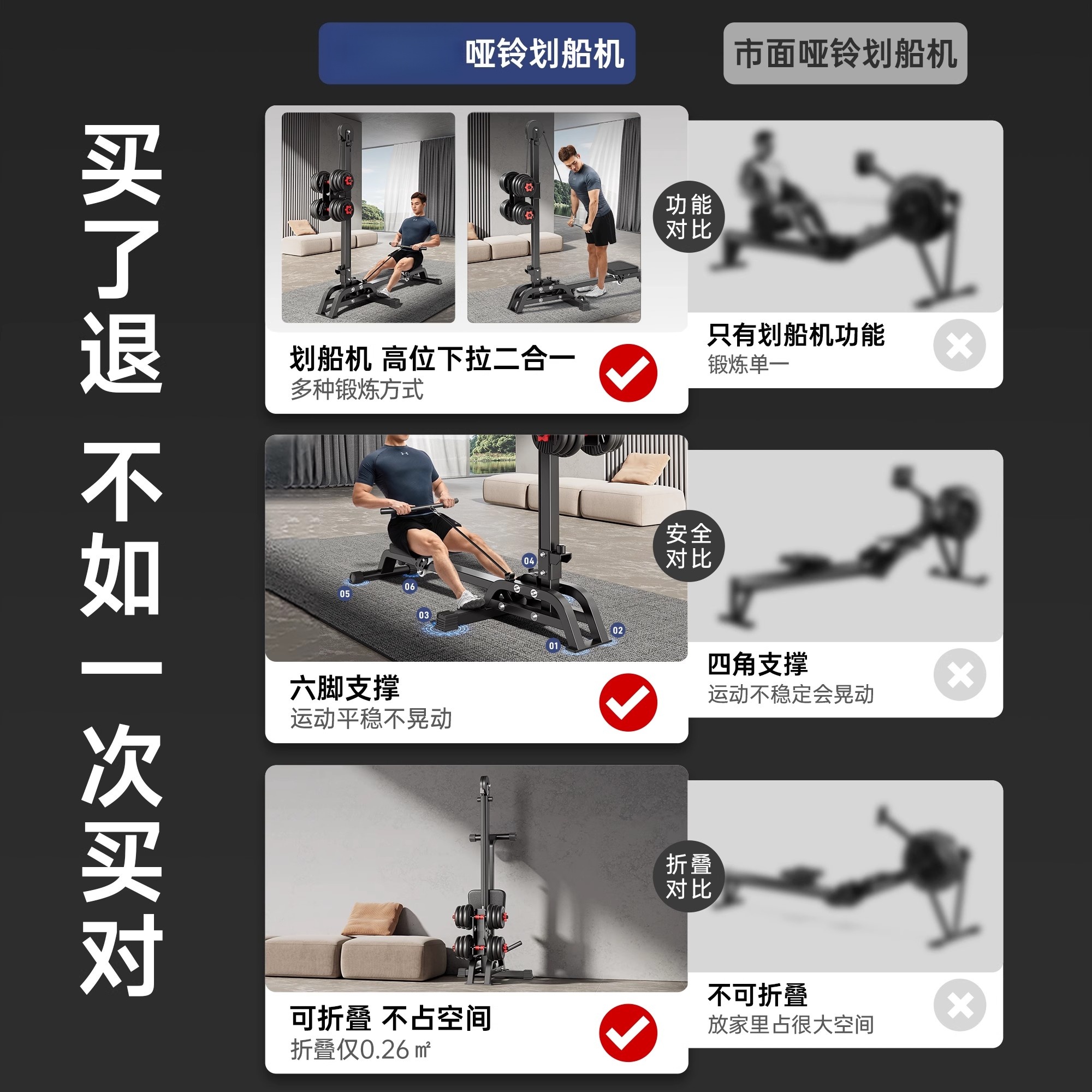 多功能哑铃划船机家用健身可折叠室内训练器有氧燃脂减肥运动器材