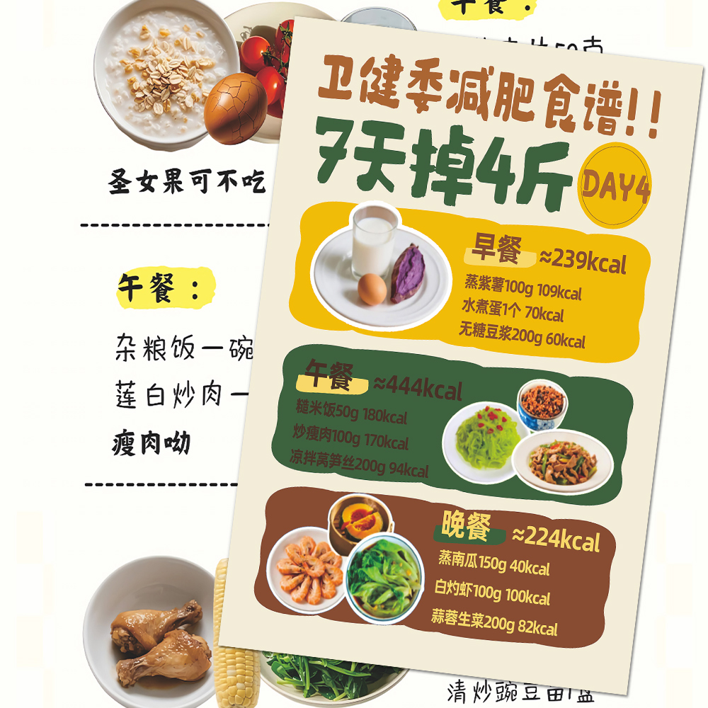 【周计划减脂】48张加大升级版卫健委健康减脂食谱贴纸减肥计划贴