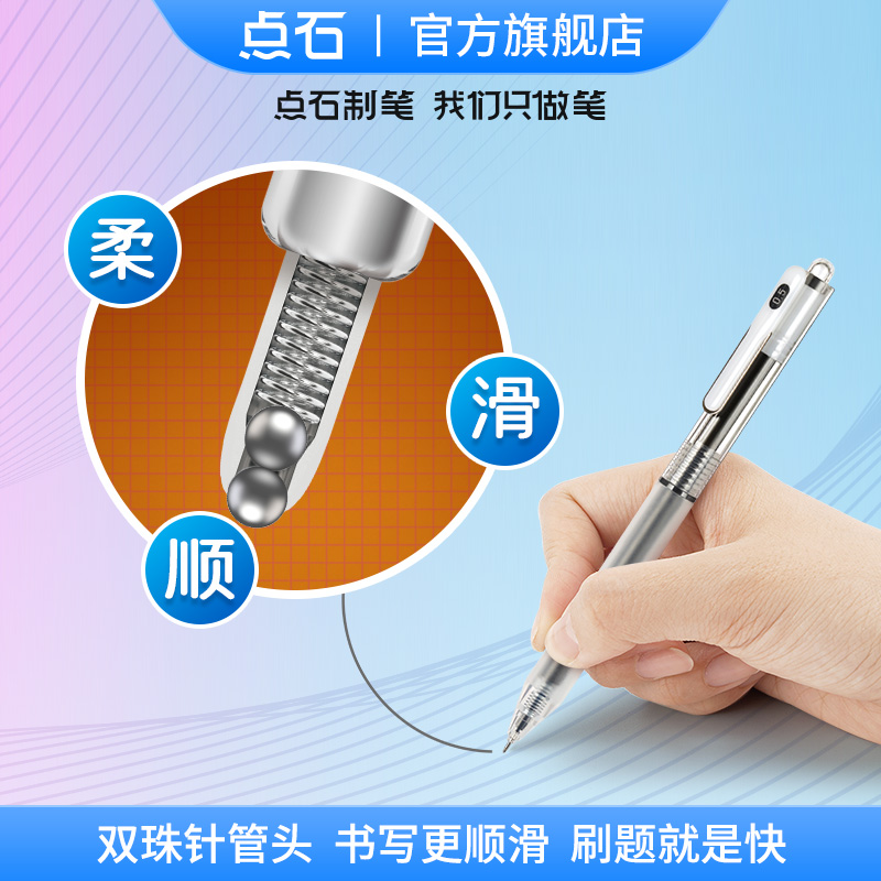 > 点石按动中性笔双珠速干红笔黑笔0.5mm刷题笔考试学生专用按动高颜值水性笔签字笔圆珠笔练字套装DS-0176
