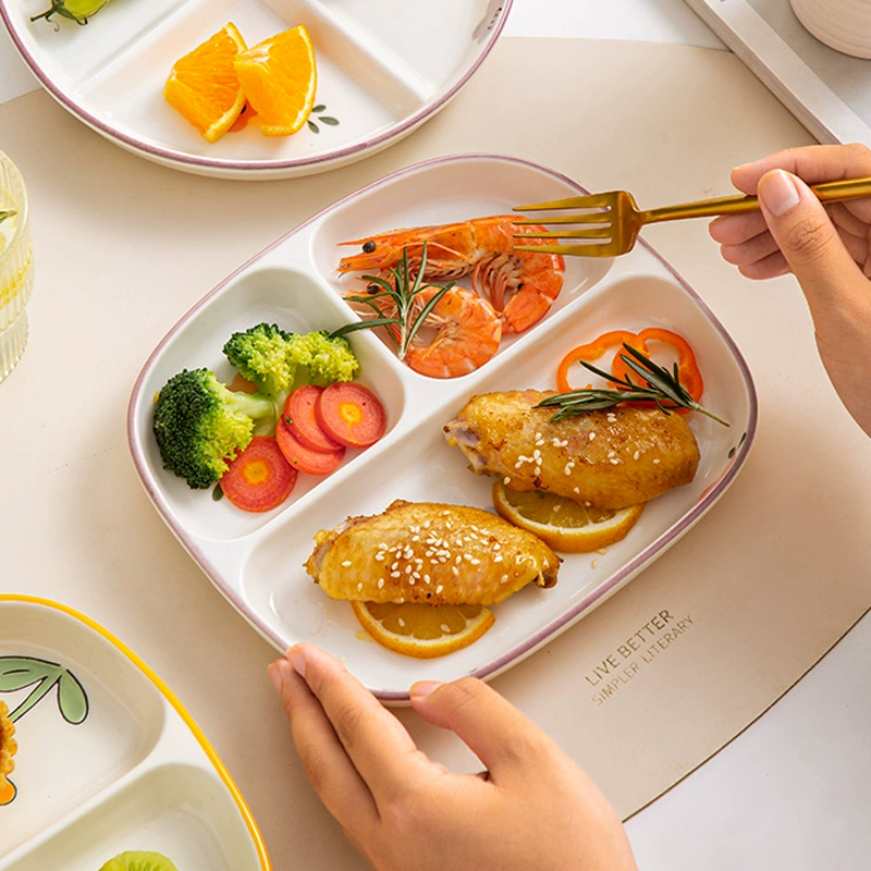 分格餐盘211减脂餐盘家用儿童餐具陶瓷早餐盘大人减肥定量饭盘子