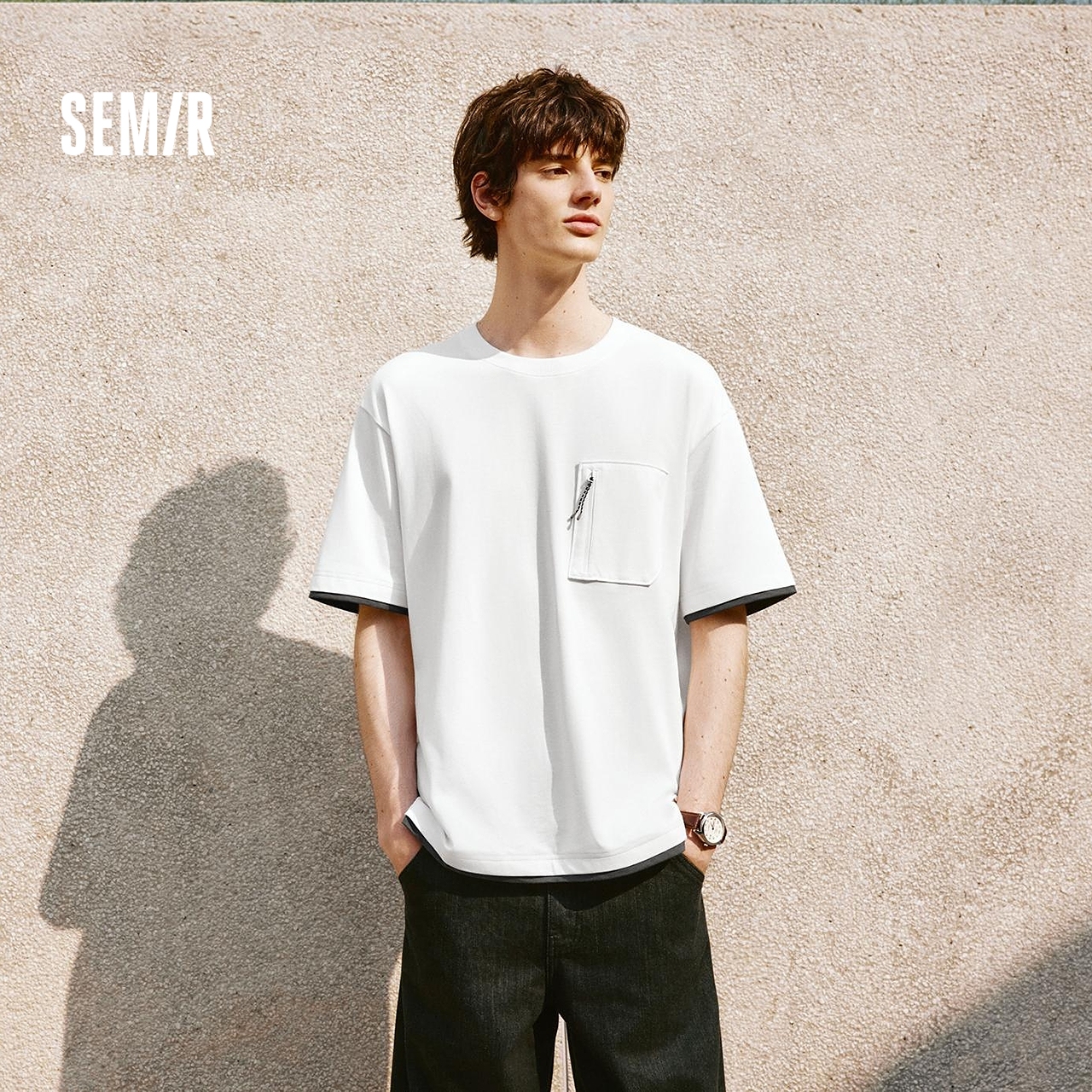 > 森马短袖T恤男撞色拼接假两件户外工装风上衣秋季休闲装宽松百搭