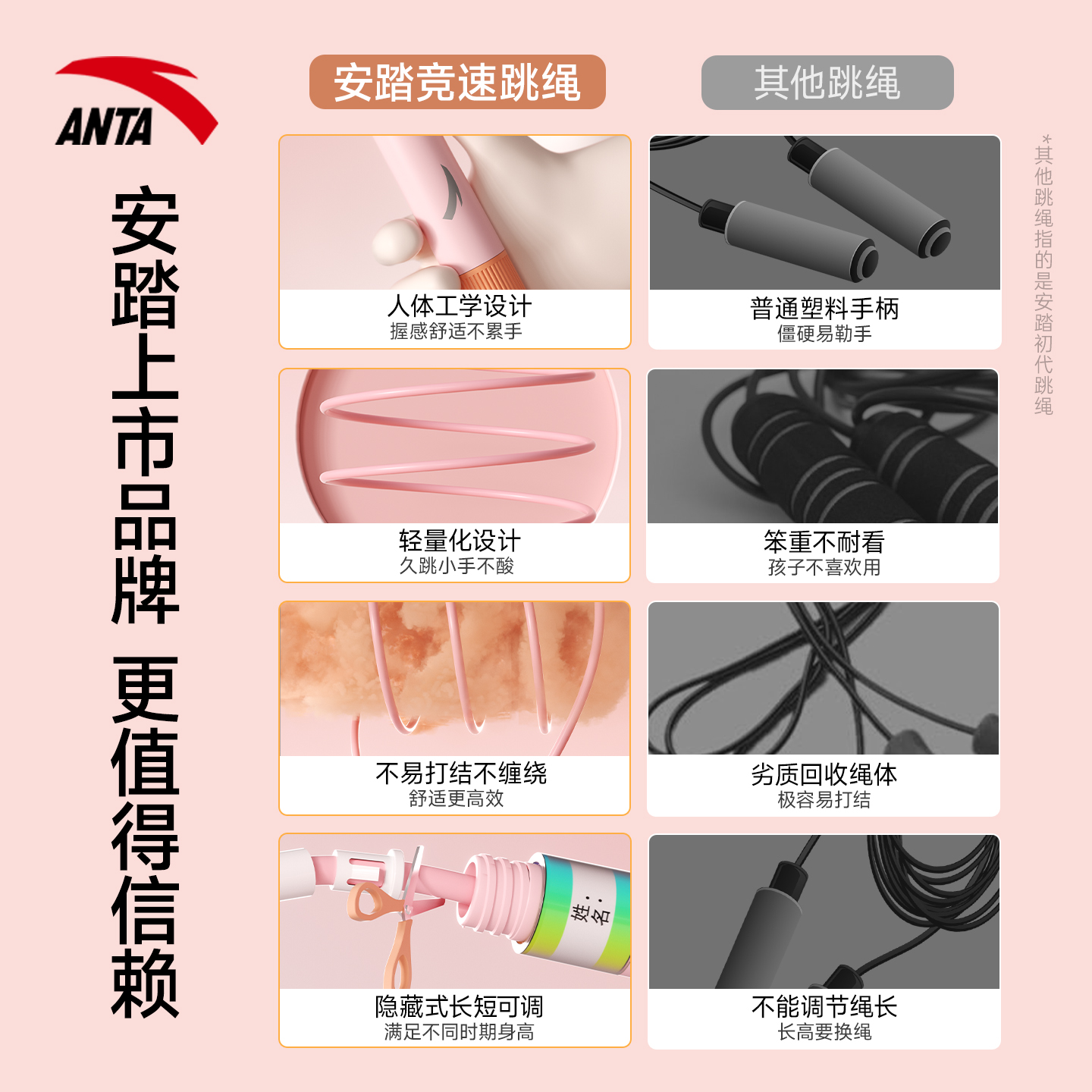 安踏竞速跳绳儿童小学生专用初中生中考体育考试专用标准款减肥绳