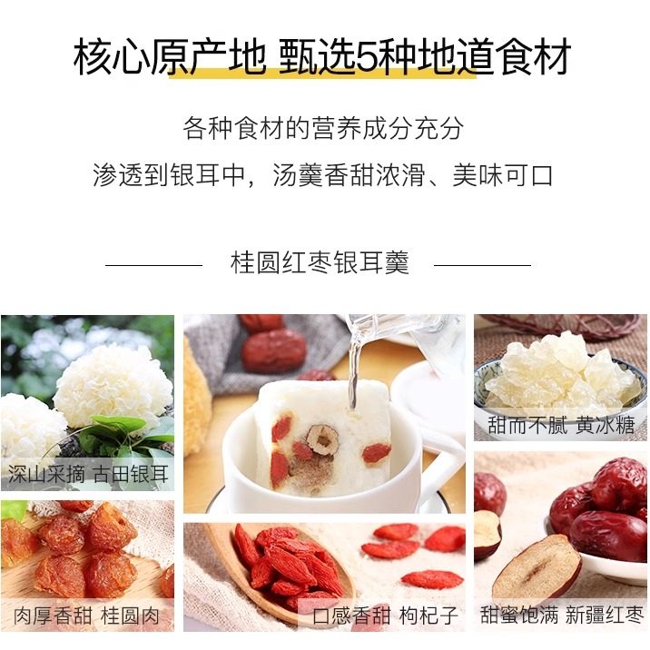 淘宝天猫盛耳冻干银耳羹12种口味冲泡即食干免煮桂圆红枣莲银耳饮白木耳羹优惠券折扣价格–彩云间