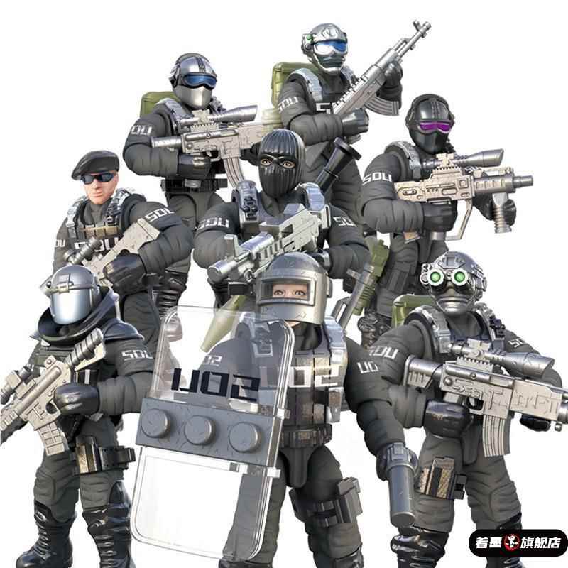 拼装关节可动特种益智军事积木飞机坦克人仔模型手办特警玩具