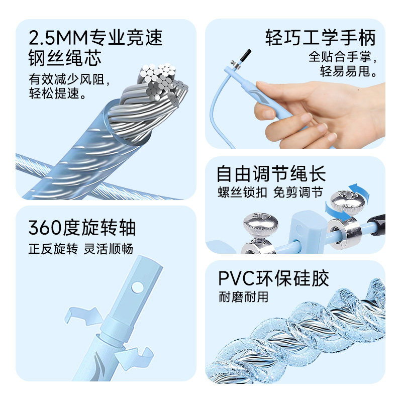您的位置: 李宁跳绳钢丝款成人减肥专用燃脂不打结健身器材女士运动训练专业