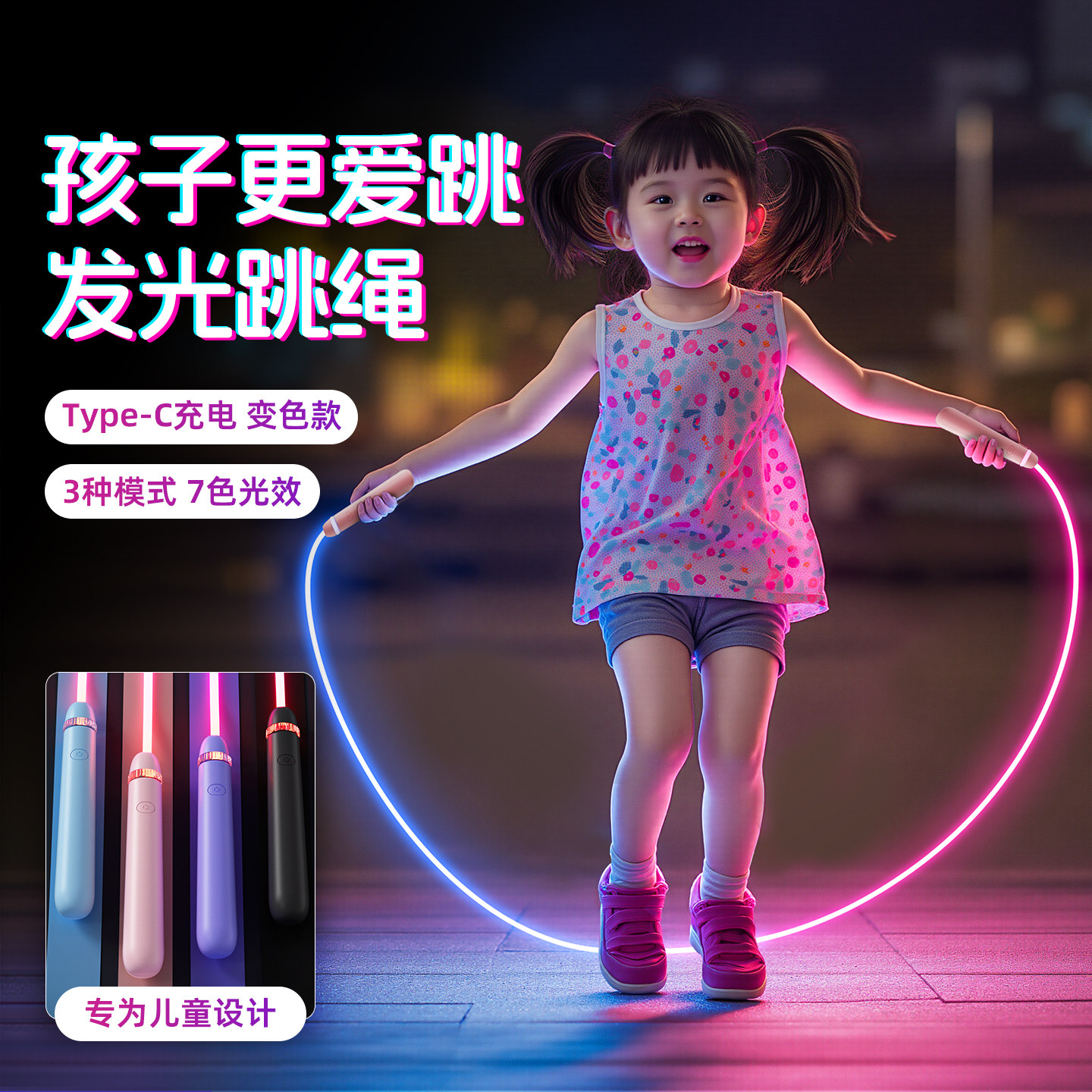 炫彩发光跳绳儿童幼儿园大班小朋友初学者小学生专用夜光运动减肥