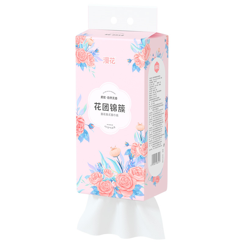 漫花10提悬挂式抽纸家用纸巾整箱面巾纸原木餐巾纸壁挂卫生纸