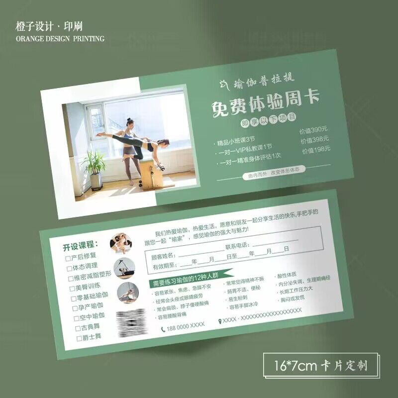 您的位置: 瑜伽普拉提馆开业抵金券拓客卡优惠券定制健身减肥体验券设计传单