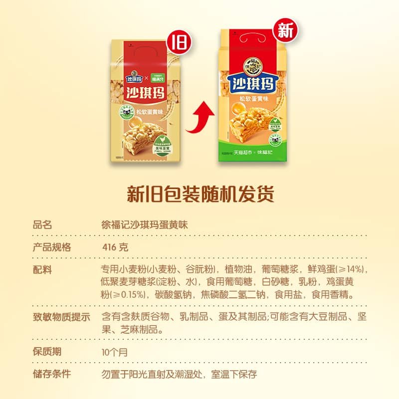 淘宝天猫徐福记糕点沙琪玛416g松软蛋黄味营养早餐休闲食品中式下午茶点心优惠券折扣价格–彩云间