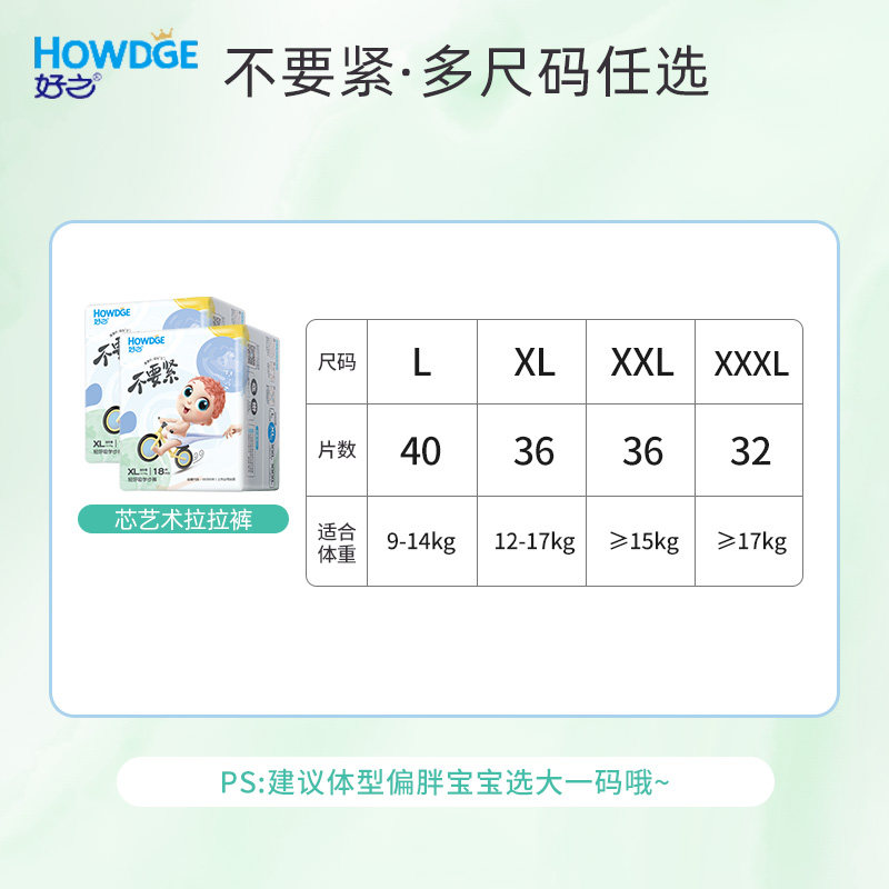 Howdge好之不要紧拉拉纸尿裤超薄透气干爽轻柔护臀宝宝尿不湿旗舰