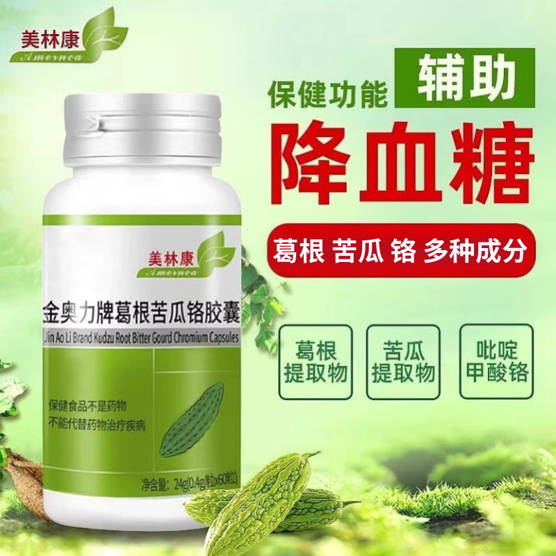 美林康金奥力牌葛根苦瓜铬胶囊搭辅助中老年高血糖降糖血糖桑叶茶