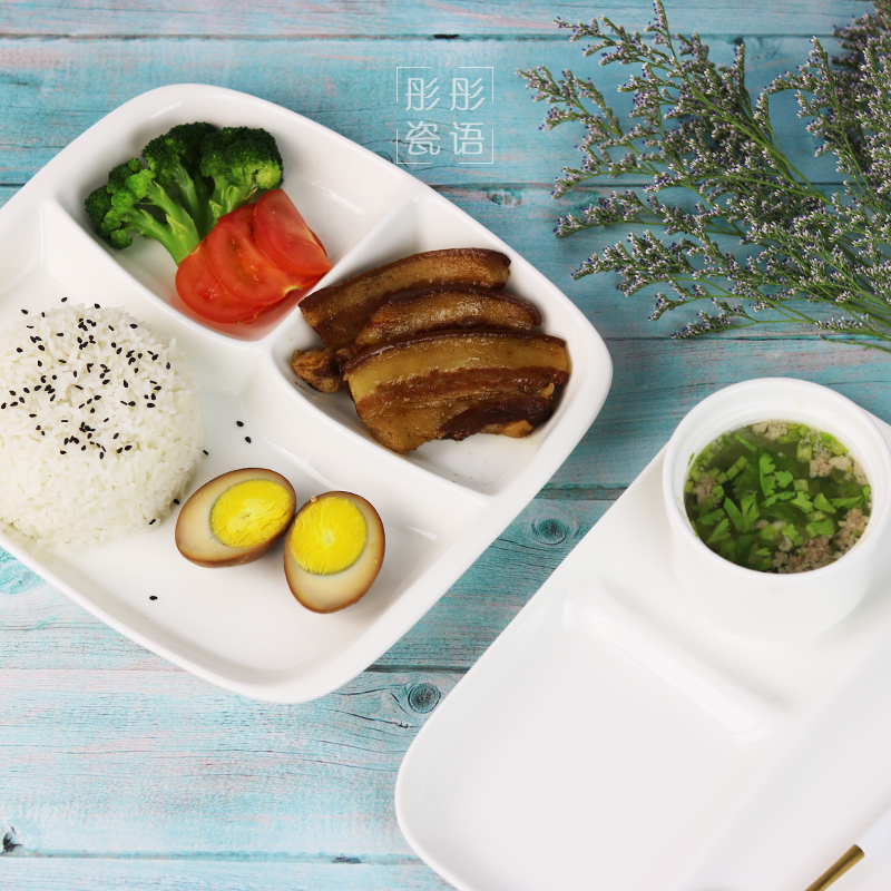 您的位置: 陶瓷三格分餐盘家用分格盘创意减肥菜盘食堂饭盘一人食月子餐具