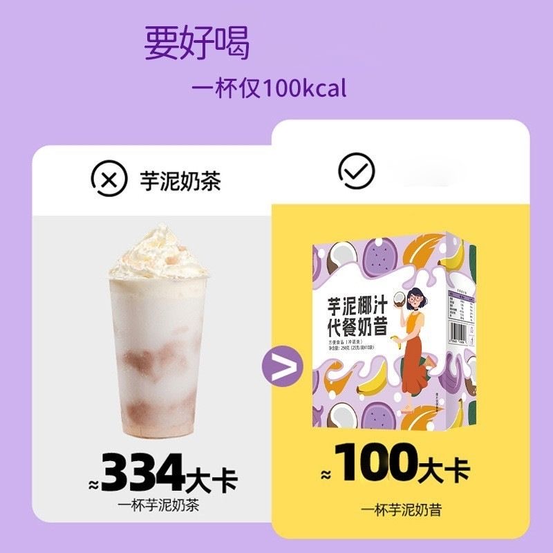 奶昔代餐瘦身减肥正品膳食纤维代餐粉0蔗糖0卡0反式脂肪酸适合减脂期的食物新货芋泥椰汁膳食纤维轻食提高代谢饱腹包装椰子奶昔