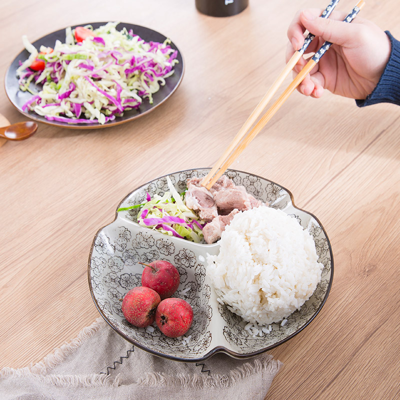 淘宝天猫日式分格餐盘陶瓷家用水果盘大人减肥盘 创意快餐早餐盘食堂餐具优惠券折扣价格–彩云间