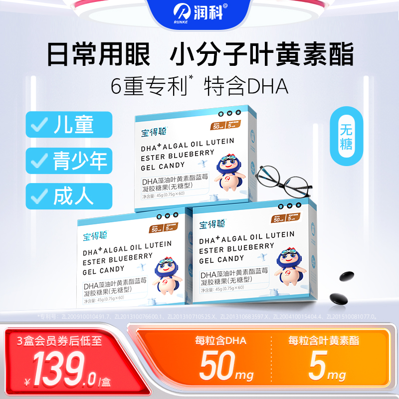 > 【3盒】润科宝得聪蓝莓叶黄素酯 学生儿童叶黄素成人无糖叶黄素