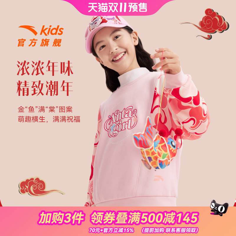 > 新年系列安踏儿童套头衫女童红色卫衣25蛇年春新款大童加绒拜年服