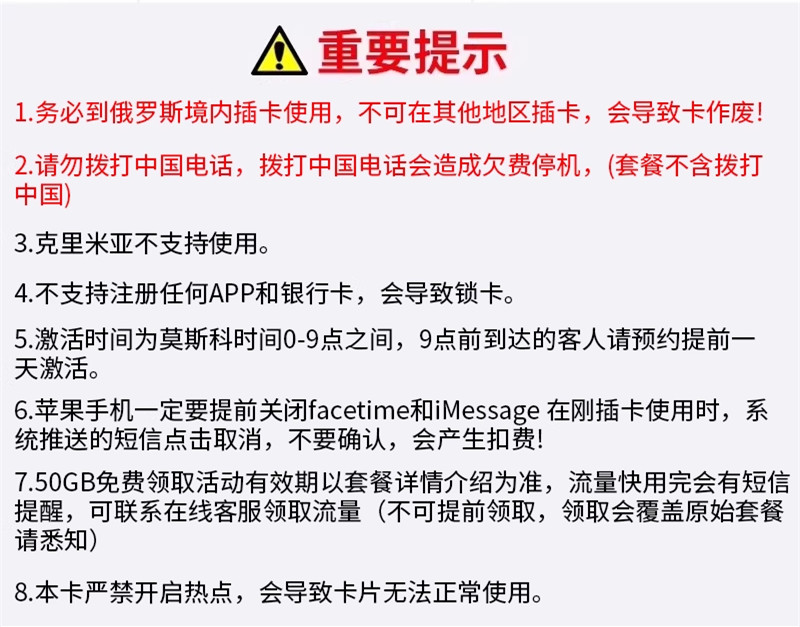 MTC俄罗斯电话卡4G手机卡流量卡上网卡莫斯科旅游海参崴贝加尔