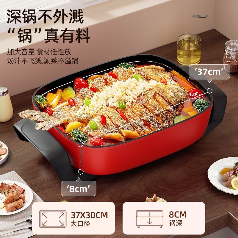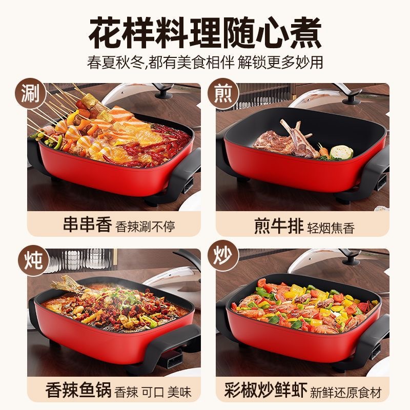 > 四方锅家用多功能电火锅宿舍不粘一体电热锅无油烟礼品电炒锅