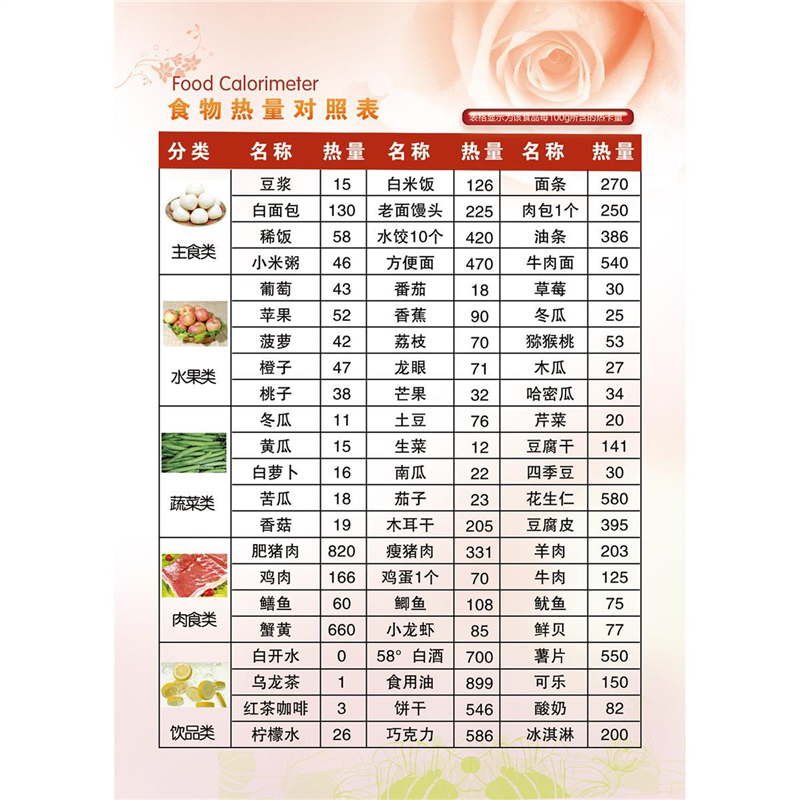 您的位置: 热量表参考墙贴常见食物热量表挂图减肥食谱卡路里表合理膳食海报