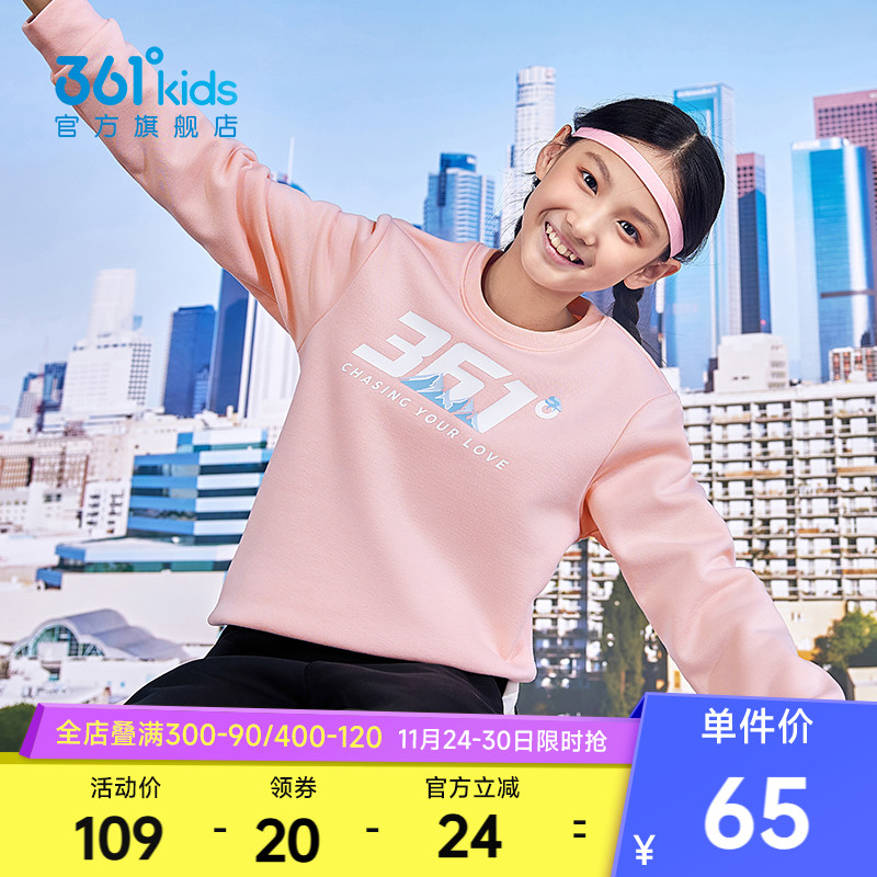 淘宝天猫361°童装男女童加厚加绒套头卫衣2025冬季新款中大童保暖上衣优惠券折扣价格–彩云间