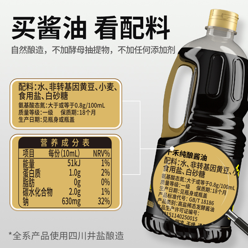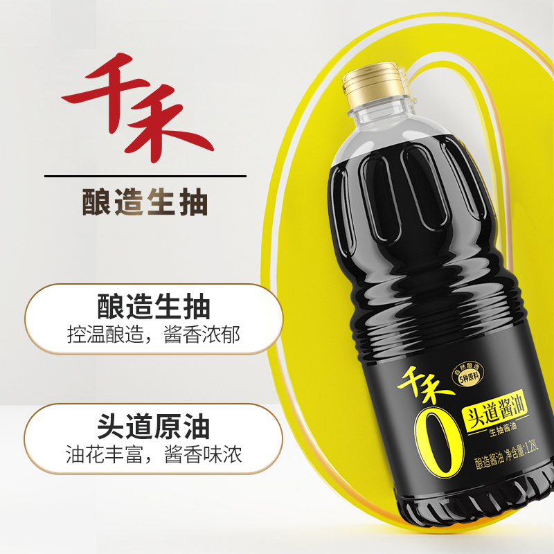 > 千禾0添加酱油头道原香酿造生抽酱油1.28L炒菜凉拌不加碘调味品